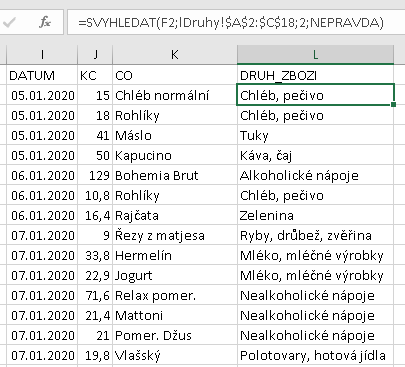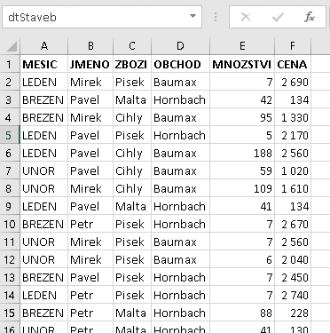 Praktické postupy jsou demonstrovány na datech stejného cvičného sešitu uvedeného v úvodu tohoto článku, a to na listech lVydaje, lDruhy a lObchody.