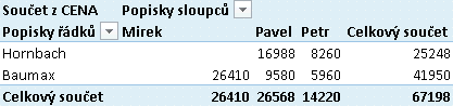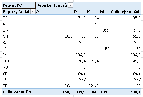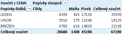 Tu je pak možno formátovat a jinak upravovat běžnými postupy definovanými pro kontingenční tabulky.