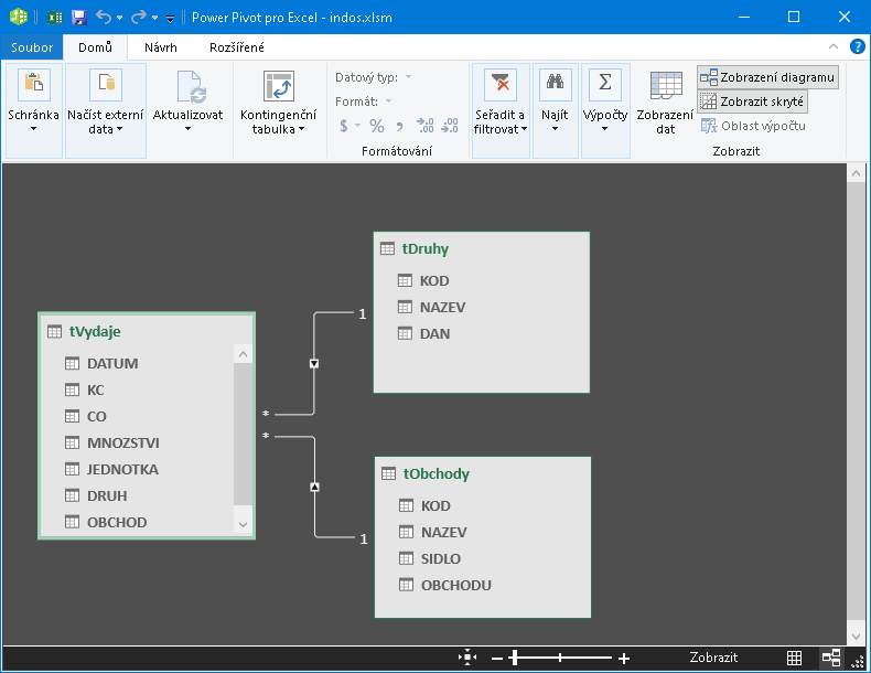 Tato kapitola se nezabývá podrobně doplňkem PowerPivot, ukazuje jen možnost grafické prezentace relací.