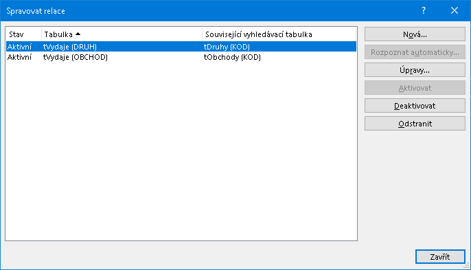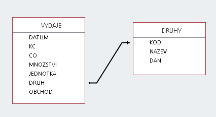 Při zpracování konkrétního řádku tabulky VÝDAJE tak lze čerpat data i z logicky připojeného řádku tabulky DRUHY.