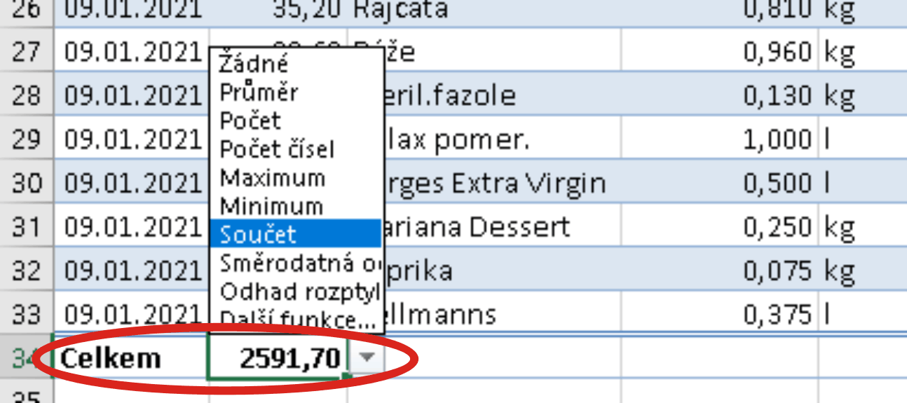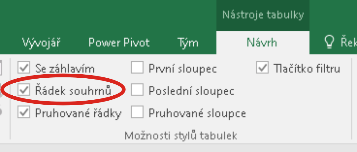 | tbVydaje [ [#Totals]; [KC] ] | Existuje-li řádek souhrnů (např. jako řádek 34 listu), pak odkaz vrací hodnotu souhrnu dat ve sloupci [KC]. Neexistuje-li, je zápis hodnocen jako neplatný odkaz. | B34 |