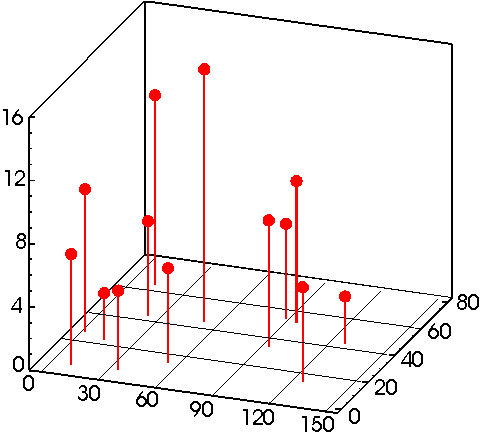 "Náhradní" body tvoří v rovině XY (většinou rovnoměrnou) síť (angl. grid - odtud ono gridování). Ukažme podstatu problému tak, že znázorníme pohled na data “shora” – ve směru osy Z (tj. vidíme “půdorys”). Takové zobrazení se často nazývá topografické: