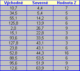 Tab. 7.1: Příklad trojrozměrného statistického souboru