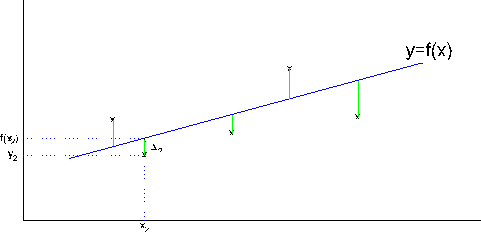 Je-li funkční hodnota vyjádřena vztahem f = f (x,y) [nebo v rovině f = f (x)], pak každá odchylka je vyjádřena výrazem