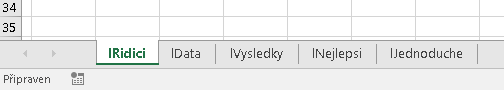 Po otevření sešitu uživatelem jsou provedeny inicializační akce a uživateli je předloženo prostředí prvního listu (je nazván lŘídící):