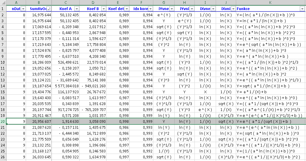 V této sestavě je zvýrazněn řádek s výsledkem té testovací funkce, pro níž (s rozptylem ±5%) byla vytvořena data. K tomu komentář: